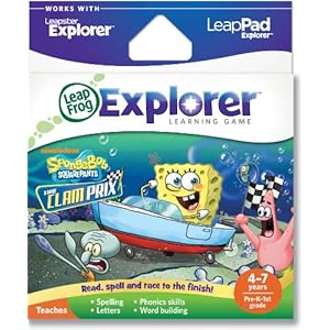 From the Manufacturer Read, spell and race on the finish in a wild kart racing adventure with SpongeBob! Works while using Leapster Explorer and LeapPad Explorer systems. Product Description Read, spell and race for the finish in a wild kart racing adventure with SpongeBob! o Choose a character and obtain ready to race on 12 tracks. o Get practice with spelling when you speed toward the flag. o Show off phonics skills while you dodge obstacles and navigate hairpin turns. o Teaches letters, spelling, phonics, word-building, word recognition and matching skills. Appropriate for kids ages 4 to 7 years. o Works with Leapster ExplorerTM and LeapPad ExplorerTM (systems sold separately).